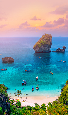 Thailand's provincial capital, Krabi radiates with gorgeous coastline, stunning islands, tropical jungle, soft-powdery sands, mist-cloaked hills and myriad water sports! The destination bursts at its seams with attractions galore to keep its visitors enthralled, engaged and entertained for several days at length. Some of the not-to-be-missed attractions for sightseers hopping aboard flights to the destination include Tiger Cave Temple, Railay beach, Poda Island, Crystal lagoon, Phi Phi Islands, Koh Lanta, Khao Khanab Nam, River Walk & Park, Bang Kram Wildlife Sanctuary, Chicken Island, Diamond Cave and Sa Phra Nang. Krabi in Thailand is arguably Thailand's tourism's Next Big Thing! But be careful, this fascinatingly natural destination is eminently addictive.