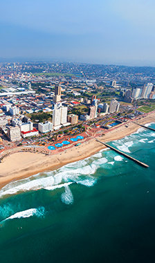 South Africa's third largest city has plenty to offer. A fun-loving metropolis on the up, it recently underwent a transformation ahead of the 2010 World Cup, with a sleek new super sized stadium and a rejuvenated waterfront. There are new plans to develop the reformed waterfront promenade right down the south coast. Culturally diverse and inherently creative, Durban also has the highest concentration of people of Indian descent outside of India itself. This helps to give Durban a palpably Asian feel. The vibrant Indian area of Durban is alive with the sounds, sights and scents of the subcontinent. With flight prices generally decreasing, there's never been a better time to find cheap flights to Durban, South Africa.